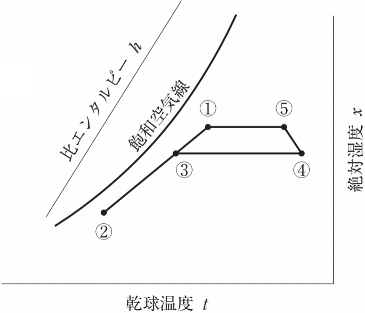 (2) 空気調和機の出口の空気の状態点は、⑤である。